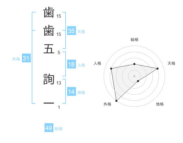 歯歯五 詢一さんの外格は31画の5点!
