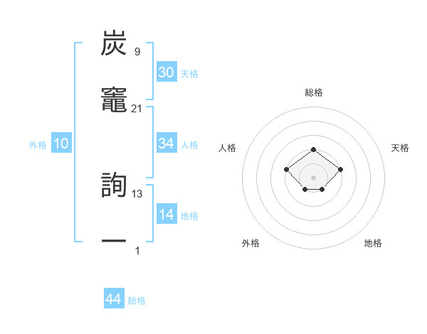 炭竈 詢一さんの総格は44画の2点!