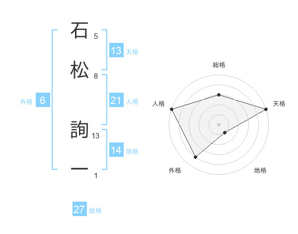石松 詢一さんの総格は27画の3点!