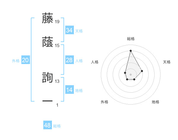 藤蔭 詢一さんの総格は48画の4点!