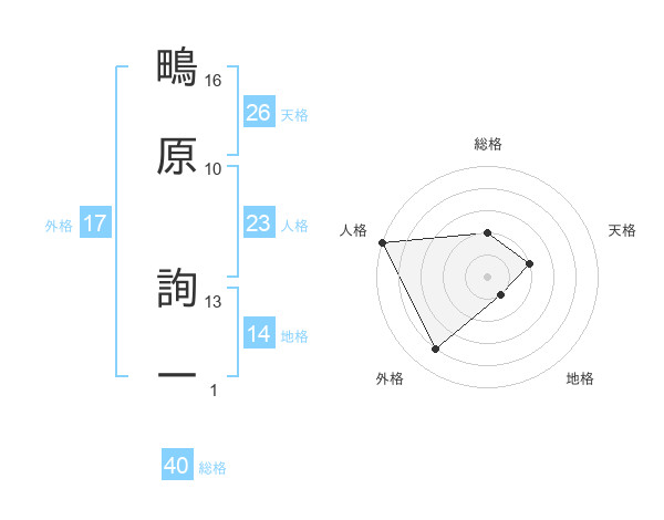 鴫原 詢一さんの総格は40画の2点!