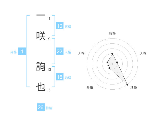 一咲 詢也さんを姓名の画数から五運を鑑定