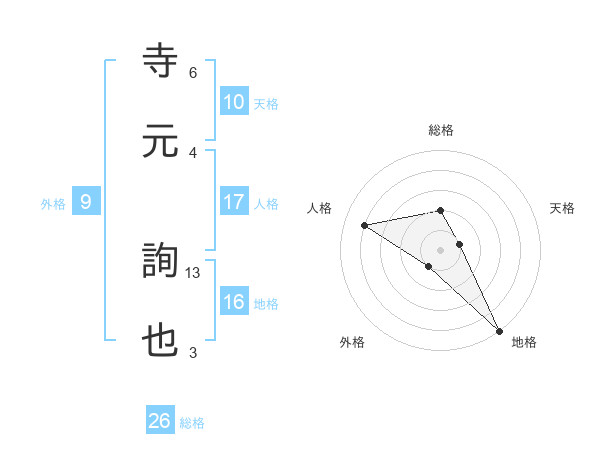 寺元 詢也さんの総格は26画の2点!