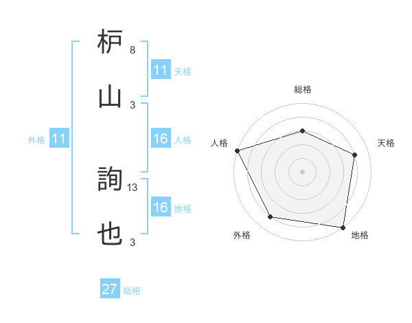 枦山 詢也さんを姓名の画数から五運を鑑定