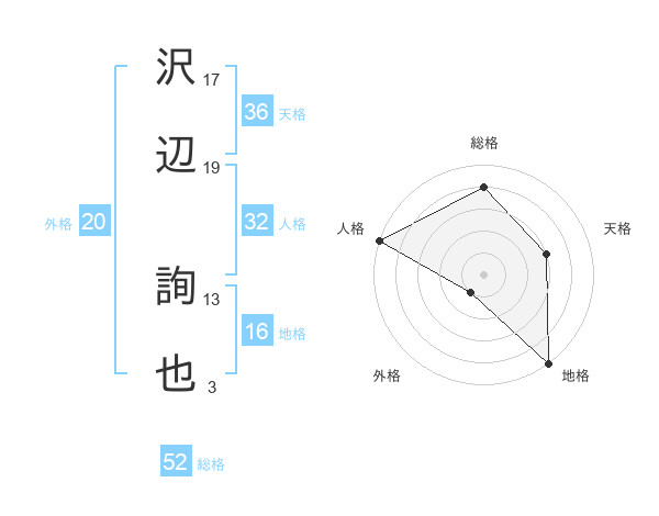沢辺 詢也さんの総格は52画の4点!