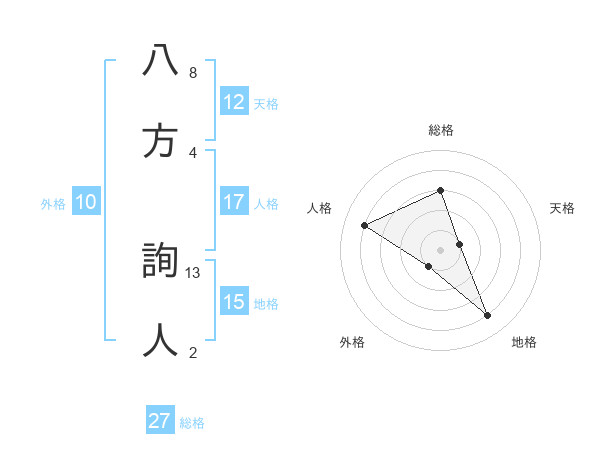 八方 詢人さんの総格は27画の3点!