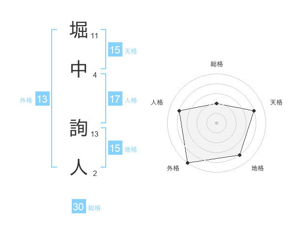 堀中 詢人さんを姓名の画数から五運を鑑定