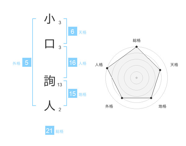小口 詢人さんの総格は21画の5点!