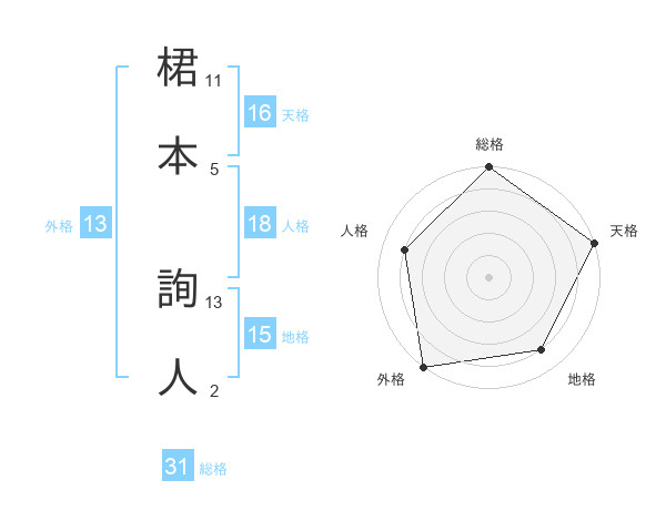 桾本 詢人さんを姓名の画数から五運を鑑定