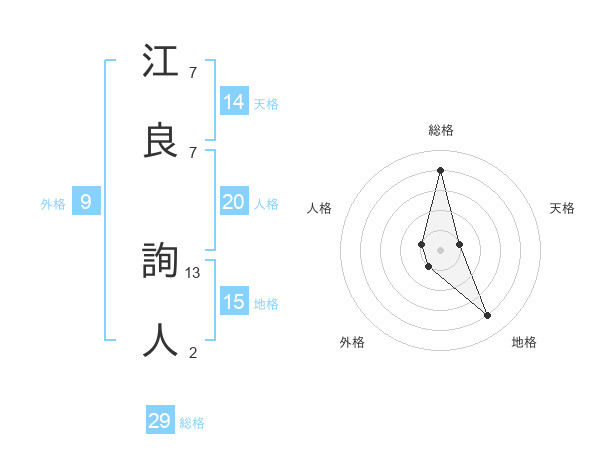 江良 詢人さんの総格は29画の4点!