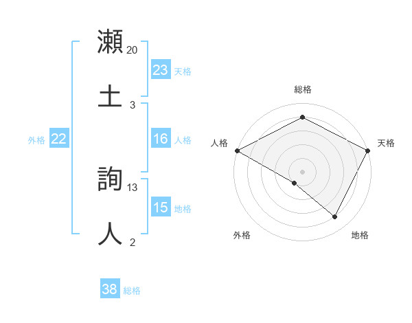 瀬土 詢人さんを姓名の画数から五運を鑑定
