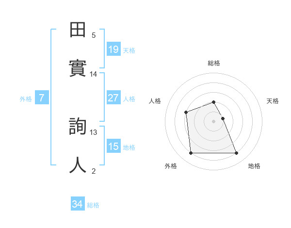 田實 詢人さんの天格は19画の1点!