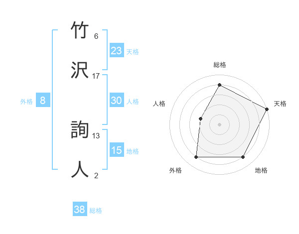 竹沢 詢人さんの総格は38画の4点!