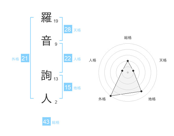 羅音 詢人さんの総格は43画の2点!