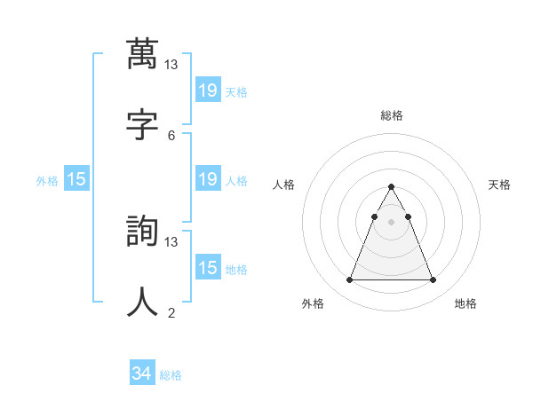 萬字 詢人さんの天格は19画の1点!