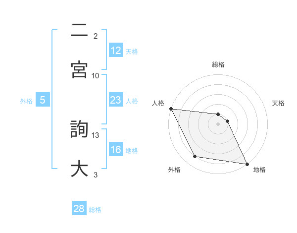 二宮 詢大さんを姓名の画数から五運を鑑定