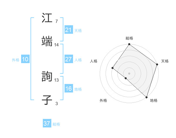 江端 詢子さんの総格は37画の5点!