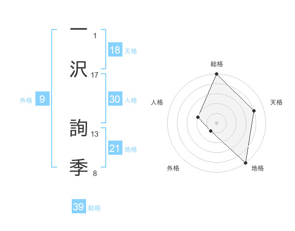 一沢 詢季さんを姓名の画数から五運を鑑定
