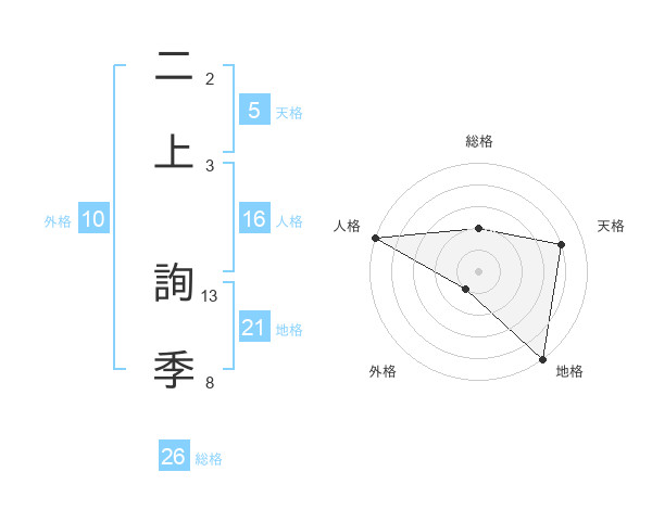 二上 詢季さんの総格は26画の2点!
