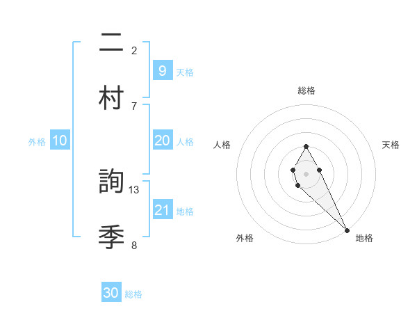 二村 詢季さんの総格は30画の2点!