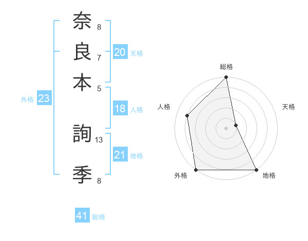 奈良本 詢季さんの総格は41画の5点!