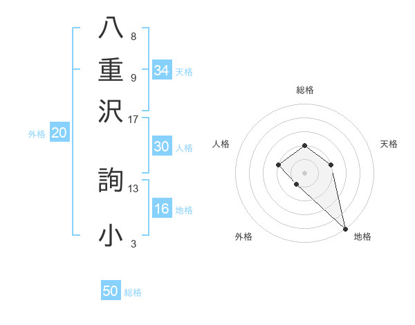 八重沢 詢小さんを姓名の画数から五運を鑑定