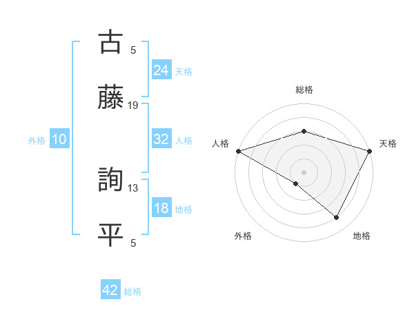 古藤 詢平さんの総格は42画の3点!
