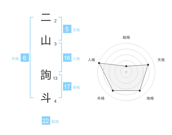二山 詢斗さんの総格は22画の1点!