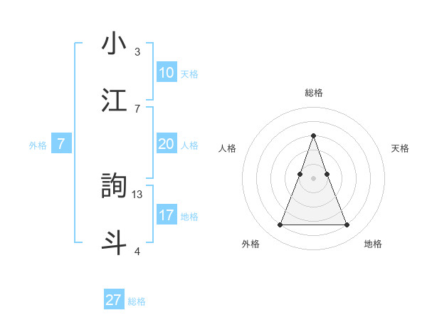 小江 詢斗さんの総格は27画の3点!