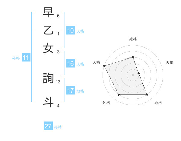 早乙女 詢斗さんを姓名の画数から五運を鑑定