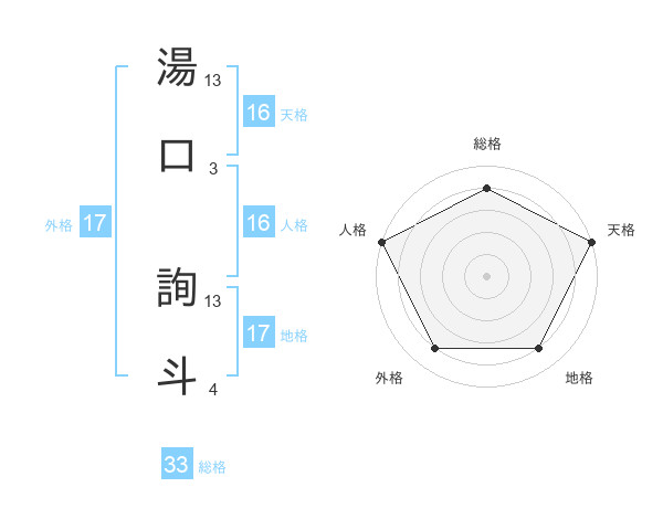 湯口 詢斗さんの総格は33画の4点!
