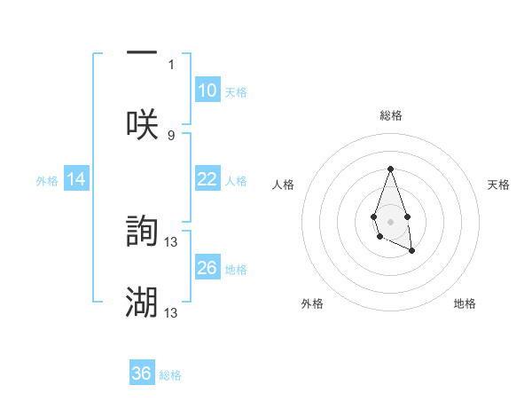 一咲 詢湖さんを姓名の画数から五運を鑑定