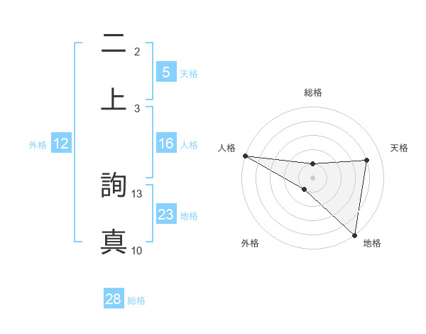 二上 詢真さんの総格は28画の1点!