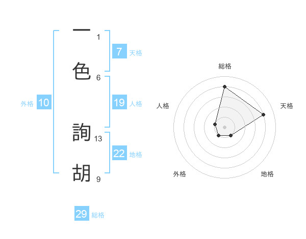 一色 詢胡さんを姓名の画数から五運を鑑定