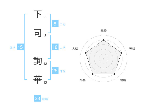 下司 詢華さんを姓名の画数から五運を鑑定