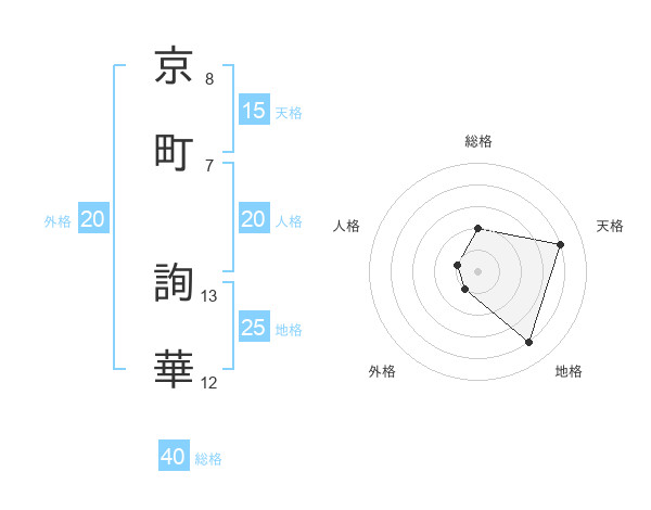 京町 詢華さんの天格は15画の4点!