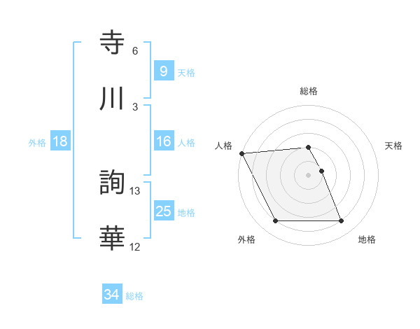 寺川 詢華さんを姓名の画数から五運を鑑定