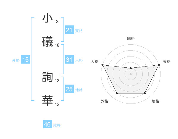 小礒 詢華さんを姓名の画数から五運を鑑定