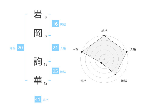 岩岡 詢華さんの総格は41画の5点!
