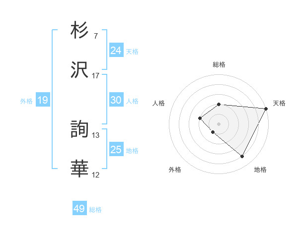杉沢 詢華さんの総格は49画の2点!