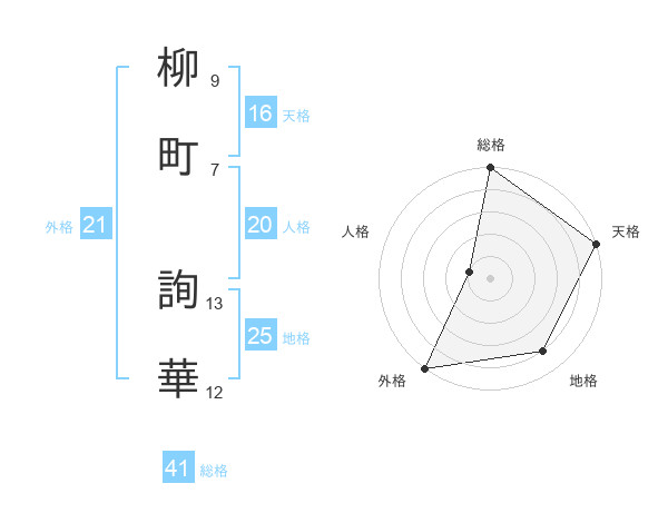 柳町 詢華さんを姓名の画数から五運を鑑定