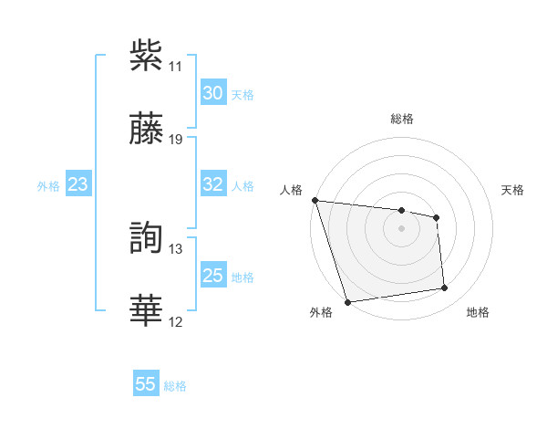 紫藤 詢華さんを姓名の画数から五運を鑑定