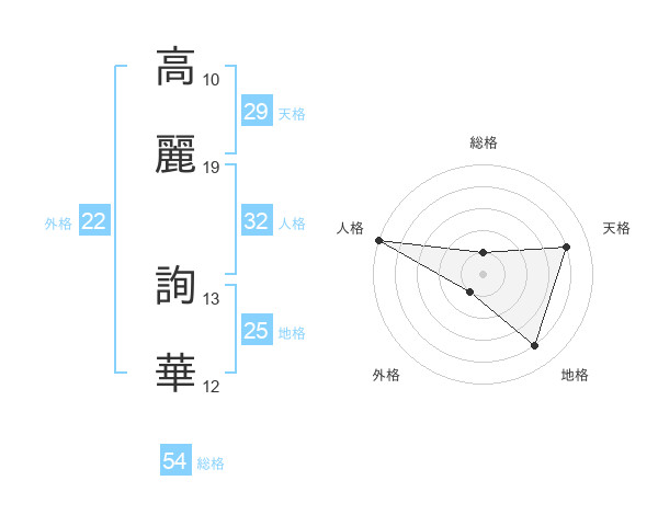 高麗 詢華さんの外格は22画の1点!