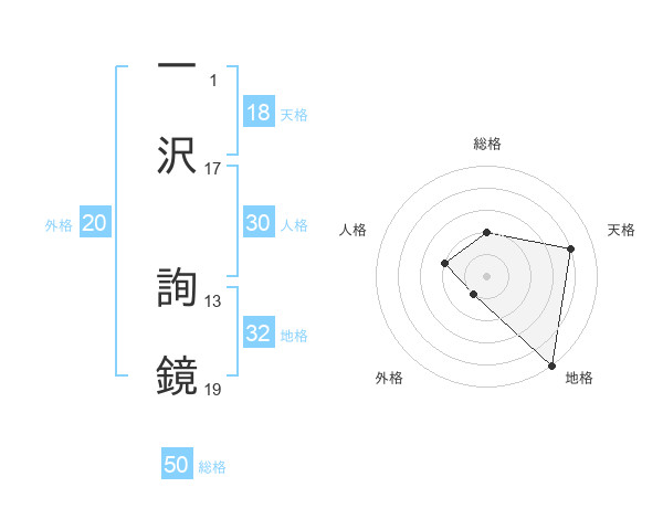 一沢 詢鏡さんの総格は50画の2点!