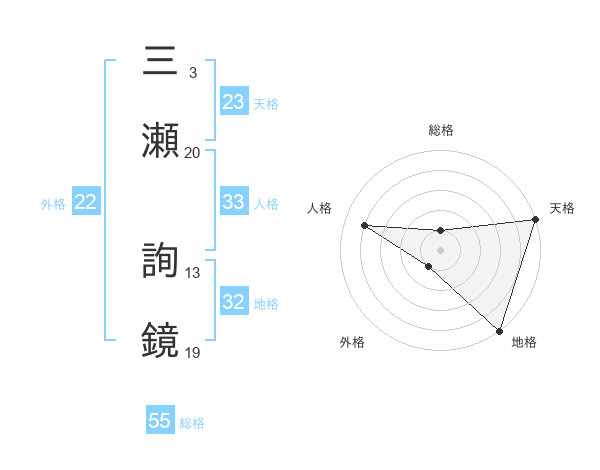 三瀬 詢鏡さんの総格は55画の1点!