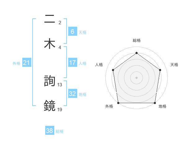 二木 詢鏡さんを姓名の画数から五運を鑑定