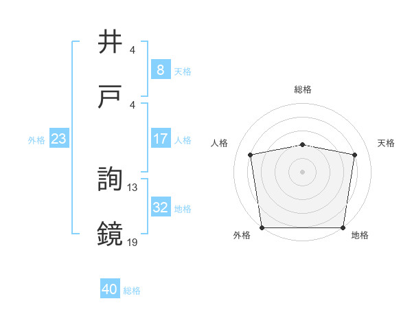井戸 詢鏡さんの外格は23画の5点!