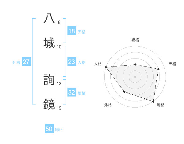 八城 詢鏡さんの天格は18画の4点!