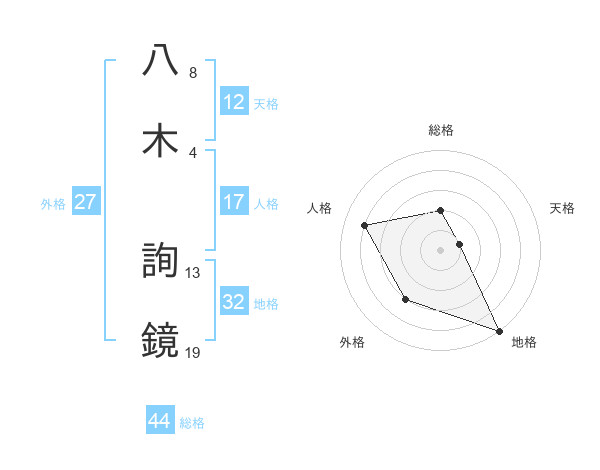 八木 詢鏡さんの総格は44画の2点!