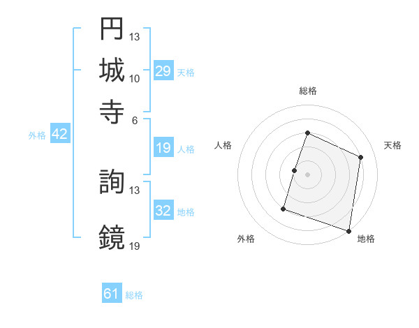 円城寺 詢鏡さんの総格は61画の3点!
